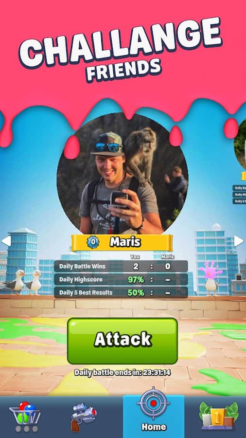 Paint Fights – очень весёлая и многоплановая игра, наслаждаться которой вы сможете со своими друзьями. Вам предстоит зарегистрировать свой профиль и добвтьть фото, напишите настоящее имя или продумайте псевдоним. Отправляйтесь на одну из доступных локаций и играйте в пейнтбол. Вам будет доступен лес, горные местности и даже городской магазинчик. Пополняйтесь запасы и не попадите под обстрел, наслаждайтесь весёлым процессом и получите массу удовольствия. Атакуйте первым и уклоняйтесь от выстрелов, продвигайтесь в рейтинге.
