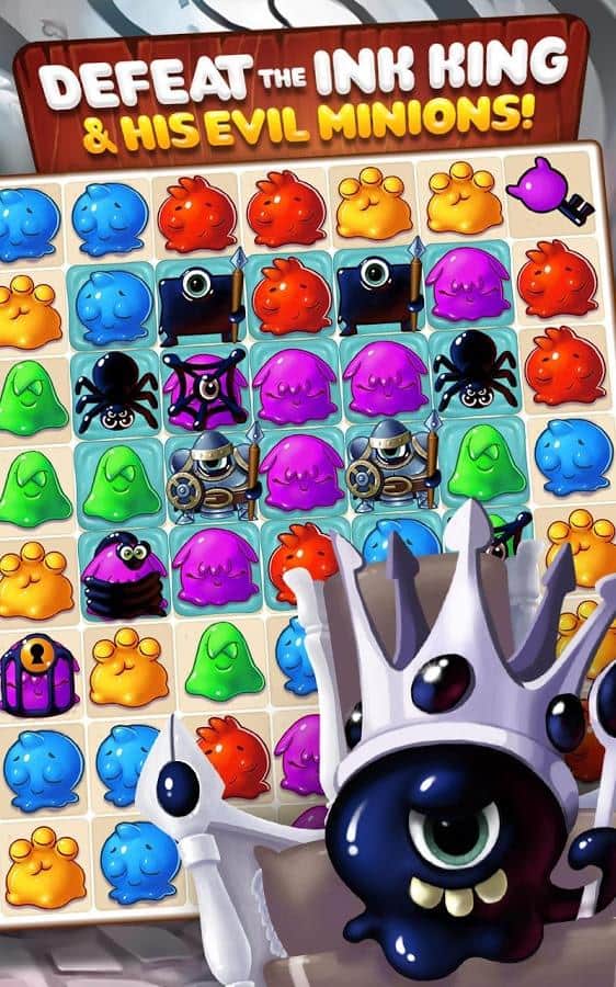Paint Monsters - Это великолепная игра в стиле «пазлы». Познакомьтесь с смешными монстрикам! Собирай их по цветам, для того, чтобы победить Короля Чернил и восстановить все яркие цвета в мире! Двигайся по уникальным уровням, собирай в одну цепочку как можно больше монстриков одного цвета и получи комбо. Смешная мультяшная графика и соответствующее музыкальное оформление будут прекрасно дополнять друг друга.