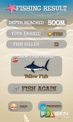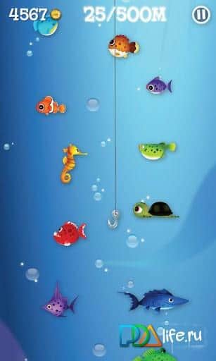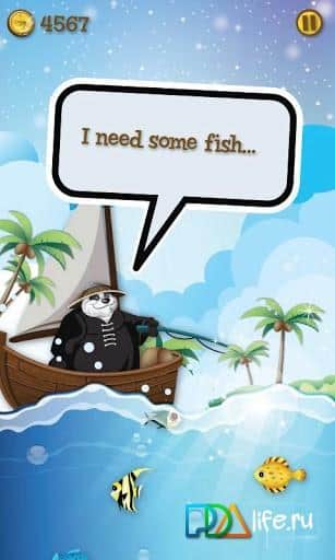 Panda Fishing - забавная аркада для андроид, в которой главное действующее лицо - Панда, который решил порыбачить. Именно этим процессом предстоит заняться вплотную. Итак, для начала вам надо опустить крючок на самый низ, а точнее дно водоема, ведь именно там водится самая вкусная и большая рыба. Но при этом важно не задеть крючком проплывающие мимо рыбешки. А вот уже когда дно будет достигнуто, тогда подымайте наверх свой улов, и как можно больше захватите рыбки при подъеме. Но на этом рыбалка не заканчивается, ведь рыбу надо разделать. Как только ваш улов окажется на поверхности, тут же начинайте орудовать ножом - эта часть игры очень напоминает Fruit Ninja, только здесь рыба вместо фруктов, но без сюрпризов не обошлось. Периодически могут выпадать бомбочки, с некоторыми рыбками удастся справиться только со второго удара, а вот с черепахой придется сложнее всего!