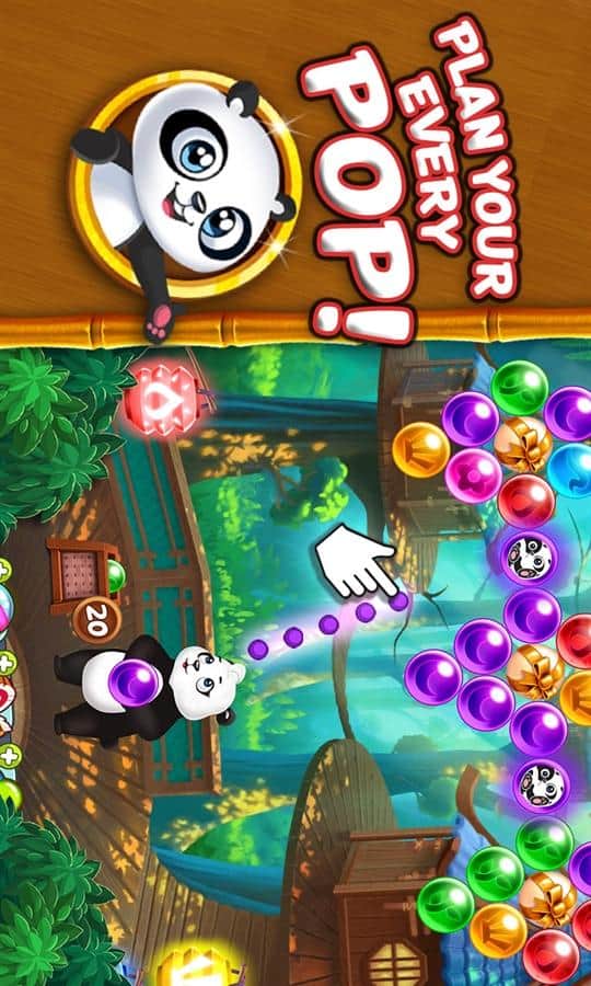 Panda Pop – увлекательная игра из жанра «три в ряд» в которой вы будете помогать панде вернуть своих детей. Злой бабуин украл детей панды и чтобы освободить их из плена, вам предстоит помочь главной героини лопать пузыри. Выстраивайте траекторию и кидайте пузыри, складывайте их по три и более одинаковых в ряд, чтобы они исчезли и освободили маленьких панд. В этой игре вас ждут более 550 неповторимых уровня, большое количество разнообразных бонусов и яркая графика свойственная играм такого жанра. Играйте со своими друзьями из Facebook и ставьте свои рекорды в этой игре.