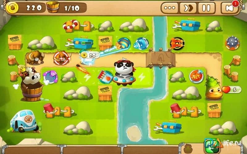 Panda TD – красочная стратегия на андроид, с элементами Tower Defense где вам предстоит защищать овощи от ужасного хомяка. В этой игре вы будете играть за панду, которая будет выстраивать линию обороны и защищать любимые овощи от нападения. Прорабатывайте свою стратегию с умом расставляя специальные пушки, которыми обладает ваш герой, и уничтожайте врагов наступающих на вас. В вашем арсенале будут разнообразные пушки с разными способностями взрывать, замораживать, замедлять и уничтожать врага, применяйте их все и мастерски расправляйтесь с врагом. Путешествуйте по красивому лесу и спасите все овощи.