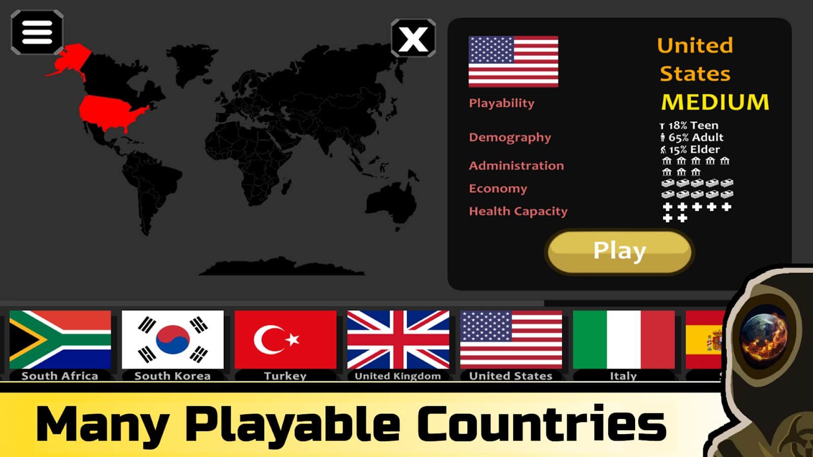 Pandemix – стратегическая симуляция, в которой вам предстоит побороть распространение смертельного вируса. Выбирайте страну, с которой все начнётся, установите иммунитет и прокачайте здоровье. Постепенно инфекция распространится и на других людей, ученые и врачи поднимут тревогу. Начнётся сбор анализов и проведение экспериментов для поиска вакцины. В игре представлен реалистичный алгоритм действий, красивая чёткая графика и множество вариантов развития событий, так что вы сможете проиграть сюжет несколько раз.
