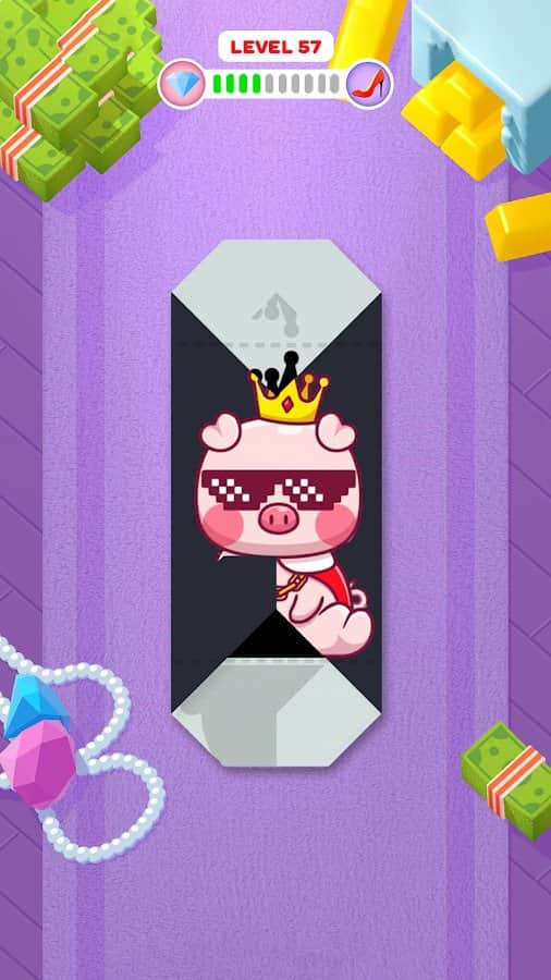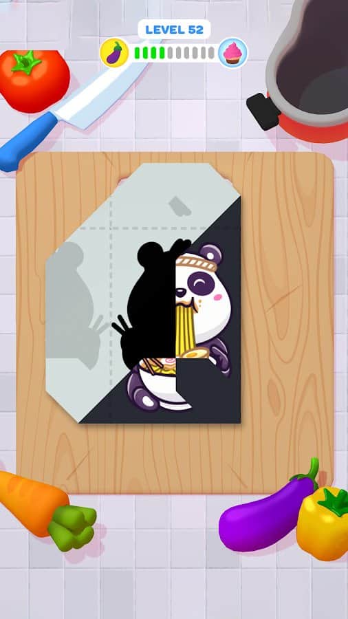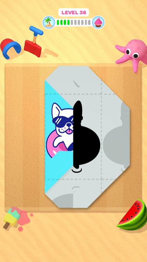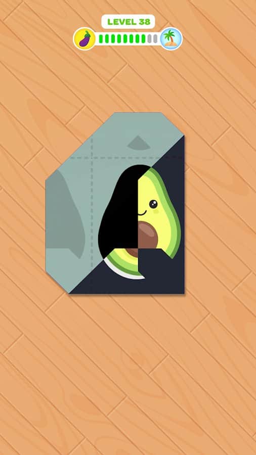 С бумаги, как ни странно, можно сделать невероятные фигурки! Проходите интересные уровни, где на простой бумаге нарисованы изображения на различные тематики. Вам совсем не обязательно спешить, так как в игре нет таймера или прочих ограничений, но в ней также нет подсказок или дополнительных возможностей. Задумка игры, как и весь интерфейс, вполне понятен даже ребенку, поэтому наслаждайтесь только прохождением уровней с помощью сбора картинок в правильные формы. Авокадо, стикеры, известные личности и многое другое, кого или что соберете вы дальше?