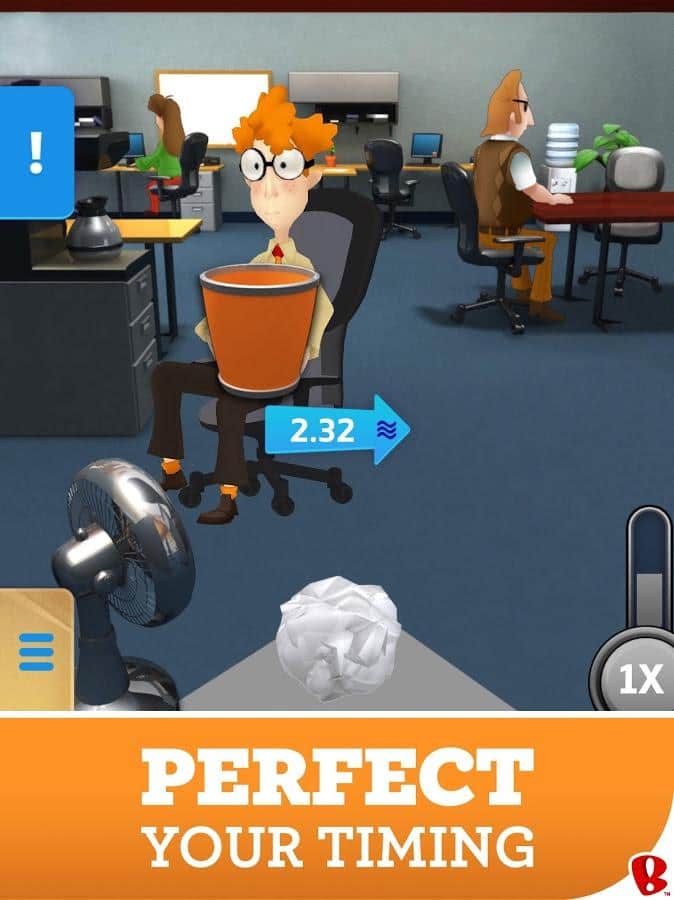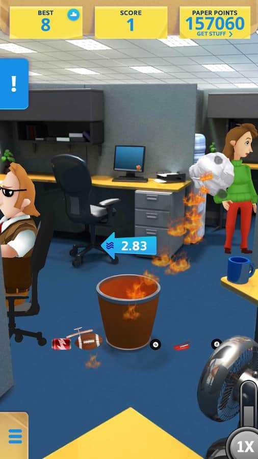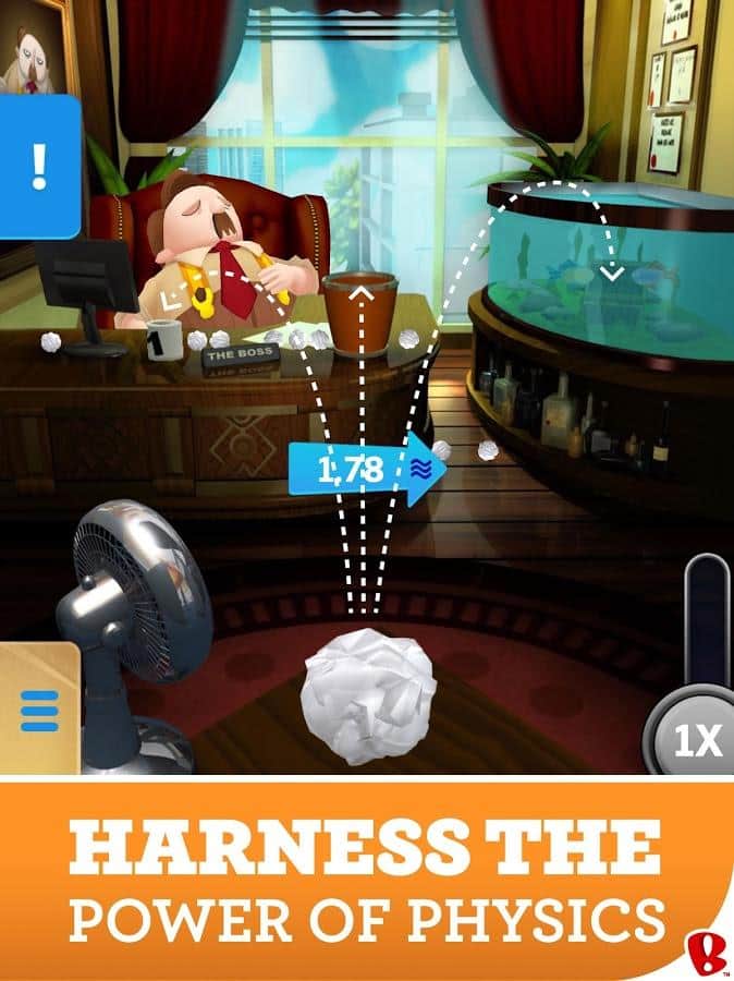 Paper Toss 2.0 на Android теперь ещё веселее. Отличная убивалка времени в которой вам необходимо попасть смятым комком бумаги в мусорную корзину. Ко всему прочему у вас появилась возможность повышать свои навыки с бананами гранатами и прочими предметами. Веселья добавляет тот факт, что многие офисные предметы могут быть разбиты.