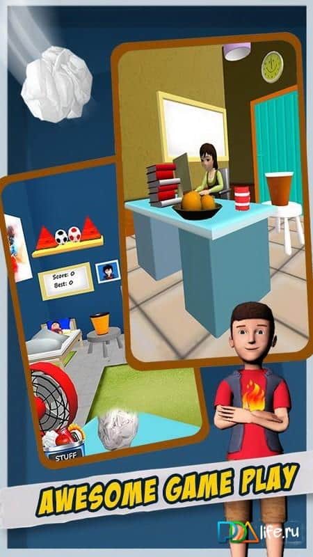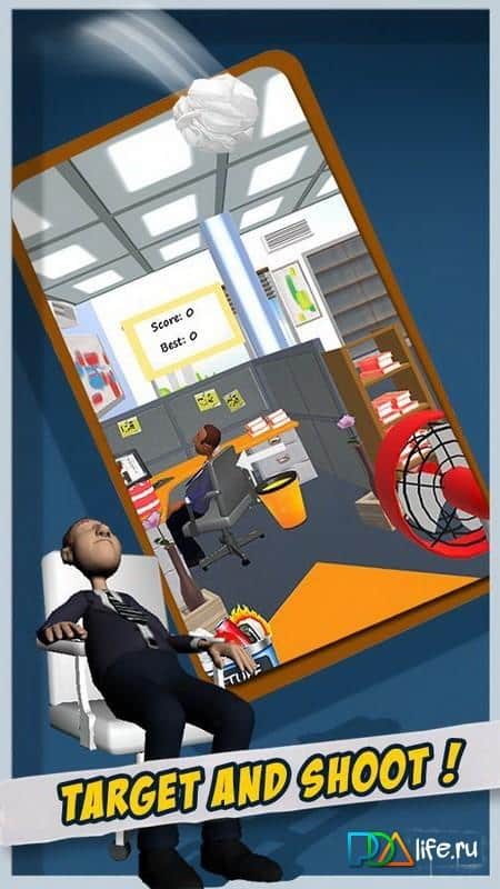 Paper Toss 2015 – увлекательный тайм-киллер на андроид, в котором вам предстоит забрасывать смятый листок бумаги в корзину. Эта игра перенесет вас в офис, где чтобы не скучать потренируйте свою меткость в забрасывании бумаги в корзину. Вы можете кидать мусор в корзину в офисе, в кабинете боссам, в холле и на улице, выбирайте понравившуюся вам локацию и зарабатывайте очки. Также вы сможете кидать бумагу в корзину, в сотрудников офиса и прохожих людей. Вам может показаться, что эта игра очень простая, но это совершенно не так сложность ее заключается в том, что на полет смятого листка бумаги будет влиять направление ветра из вентилятора. Зарабатывайте очки и устанавливайте свои рекорды в этой игре.
