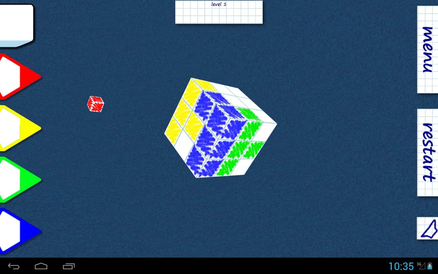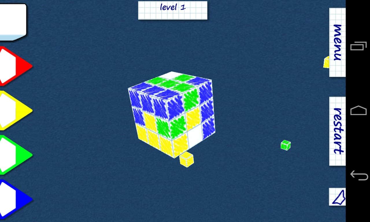 Papercube - игра головоломка на андроид, в которой вам предстоит раскрашивать бумажный кубик. Раскрашивать его нужно так чтобы не в одной из соседних сторон не оказалась одинаковых цветов. Эта головоломка на сообразительность, в которой вам не раз придется поломать голову, чтобы найти правильное решение. Ведь в реальности раскрасить кубик будет не так уж просто, как кажется с первого взгляда.