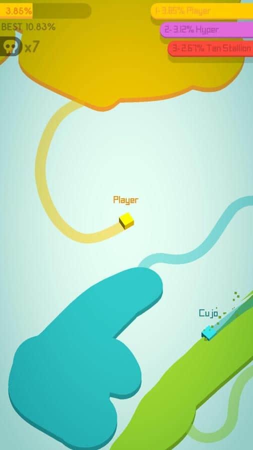 Paper.io 2 – интересная аркада на андроид, где вы будете завоевывать территорию. В этой игре вы сможете бросить вызов реальным игрокам и одержать победу, закрашивая в свой цвет как можно больше территории. Проводите по экрану своего телефона пальцем и рисуйте различные фигуры присоединяя их к имеющейся, тем самым вы будете захватывать территорию и она будет окрашиваться в ваш цвет. Зарисовывайте территорию в свой цвет и не оставляйте соперникам не единого шанса на победу. Поднимайтесь как можно выше в таблице лидеров и добейтесь отличных результатов.