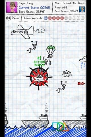 Parachute Panic Mango представляет собой простую, но довольно увлекательную игру для Windows Phone 7. Смысл её состоит в следующем: из пролетающих над морем самолетов выпрыгивает определенное количество парашютистов, которым необходимо приземлиться на борт соответсвующего корабля. Ваша задача-помочь им сделать это благополучно, помогая расскрывать их парашюты, лететь в нужном направлении, а также защищая их от различного рода опасностей, типа пролетающего мимо вертолёта, НЛО и т.п.