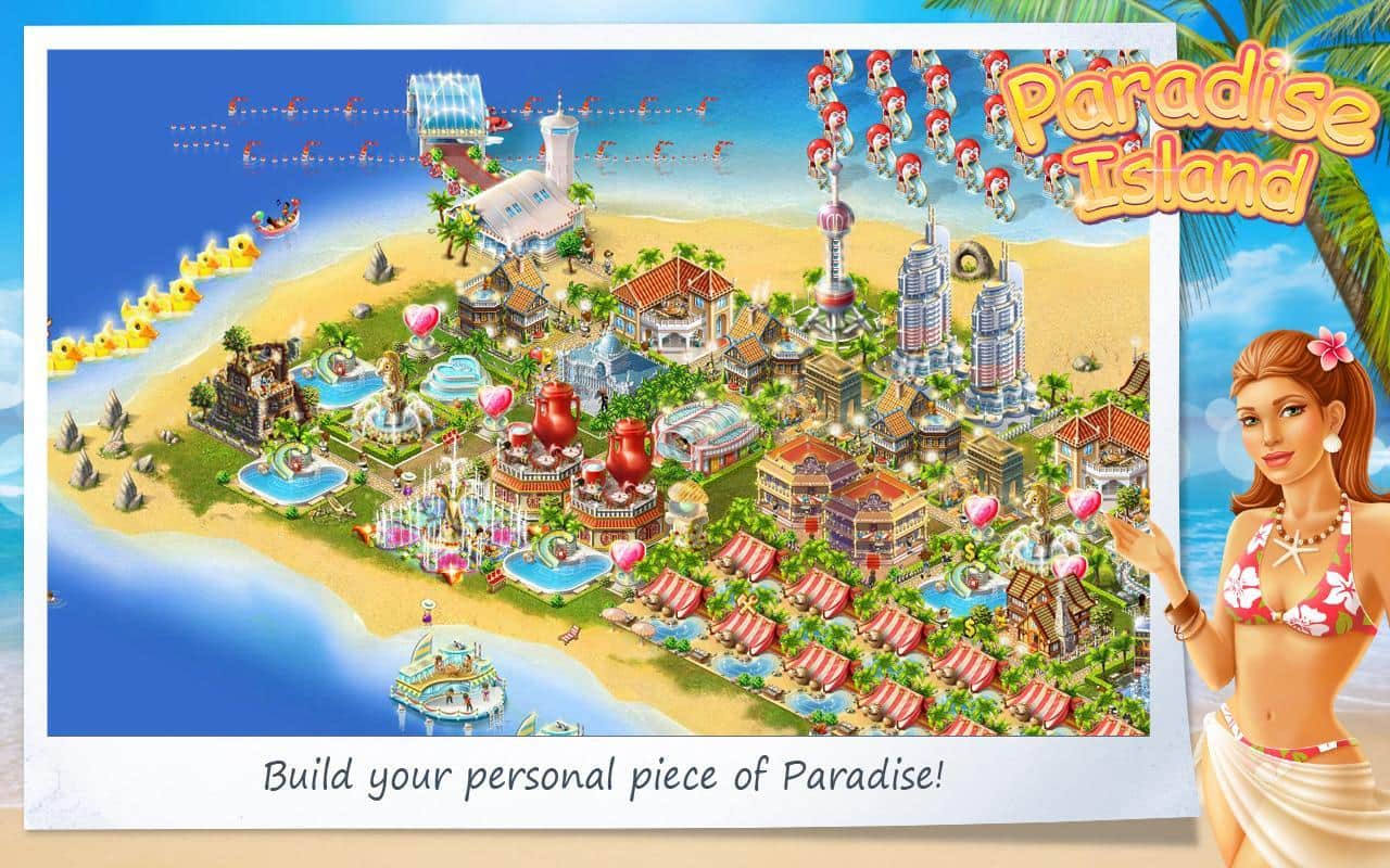 Paradise Island - экономическая стратегия на Android предлагает вам открыть свою империю развлечений в райском уголке моря, солнца и песка! Вашей фантазии нет предела. Стройте гостиницы, дискотеки, лотки с мороженым, конфетами и пр.сладостями и вкусностями, бассейны, спа-салоны, цирк, бары, казино, водные горки и прочие аттракционы, а также несколько обслуживающих зданий типа электростанции и т.д. Новые и богатые туристы тогда вам обеспечены. зарабатывайте деньги и покупайте новые территории, улучшайте имеющиеся здания. Вообщем, управляйте своим развивающимся бизнесом, хоть и виртуальным!