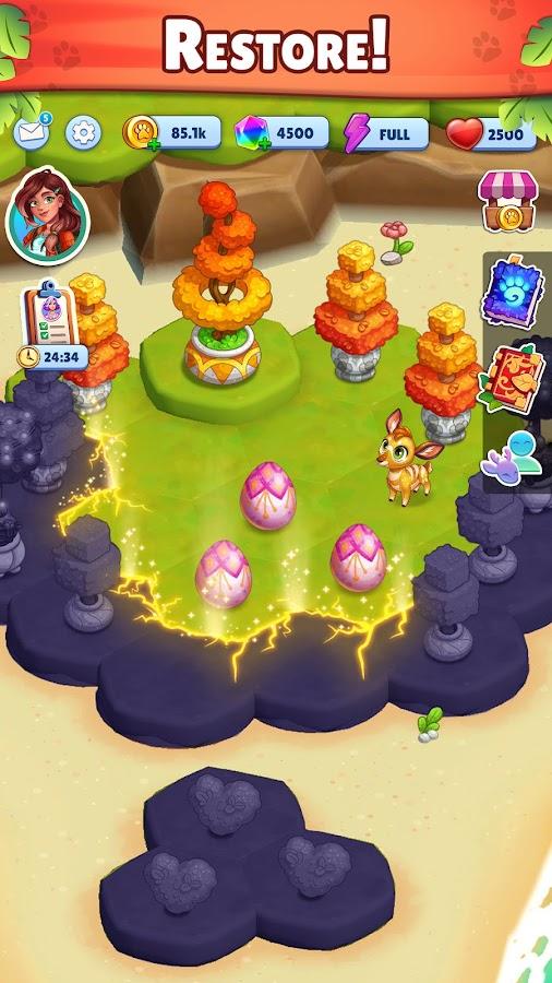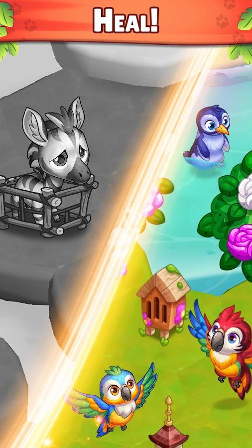 Paradise Paws: Merge Animals приглашает вас восстановить разрушенный приют для животных, спасать исчезающие виды и объединять предметы, чтобы вернуть острову былое процветание. Откройте тайны заповедника, ухаживайте за милыми существами, развивайте их и отбивайтесь от алчных застройщиков, стремящихся захватить территорию. Только вы и ваша подруга Лиззи можете построить уютный дом для животных и спасти это особенное место.
