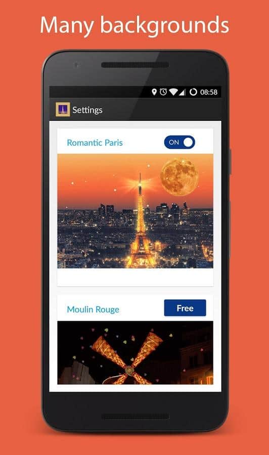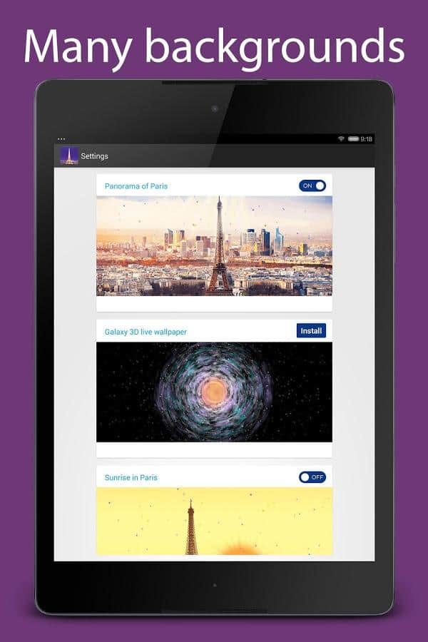Paris Live Wallpaper – романтические живые обои которые перенесут вас в незабываемый город грез и мечтаний – Париж. Установив эти живые обои в свой телефон или планшет вы как будто прогуляетесь по всем достопримечательностям Парижа таким как: Эйфелева башня, музей Лувр, Мулен Руж, Александровский мост, Собор парижской Богоматери, Триумфальная Арка и многие другие. Откройте для себя этот удивительный город, который является самой красивой столицей Европы. Погрузитесь в удивительную атмосферу узких улочек, бульваров с бистро из которых доносятся чудесные ароматы свежей выпечки и неповторимых набережных Сены. Париж это поистине великолепный город со своей историей.