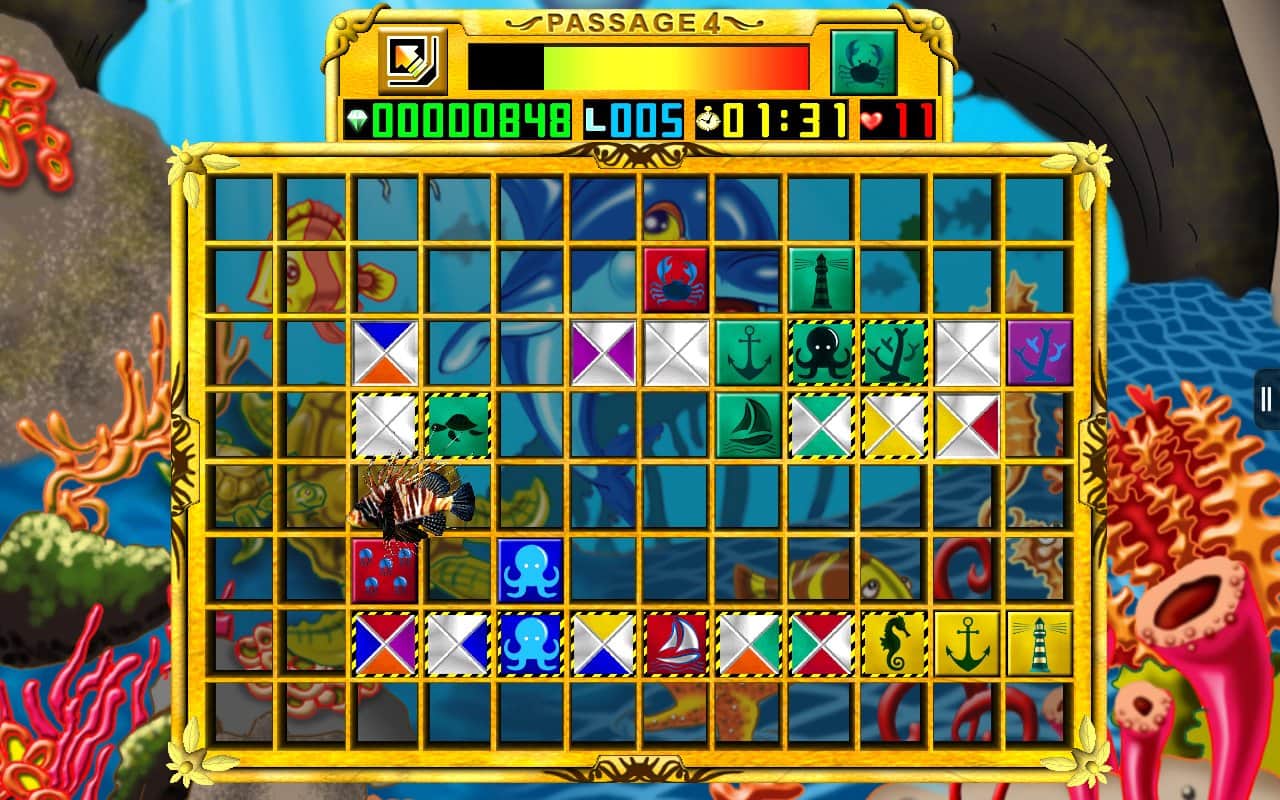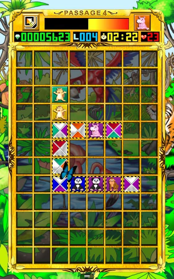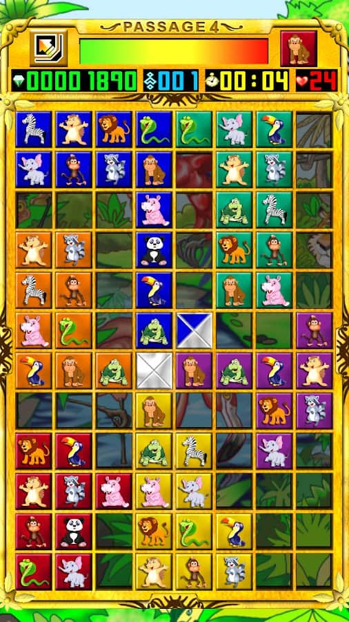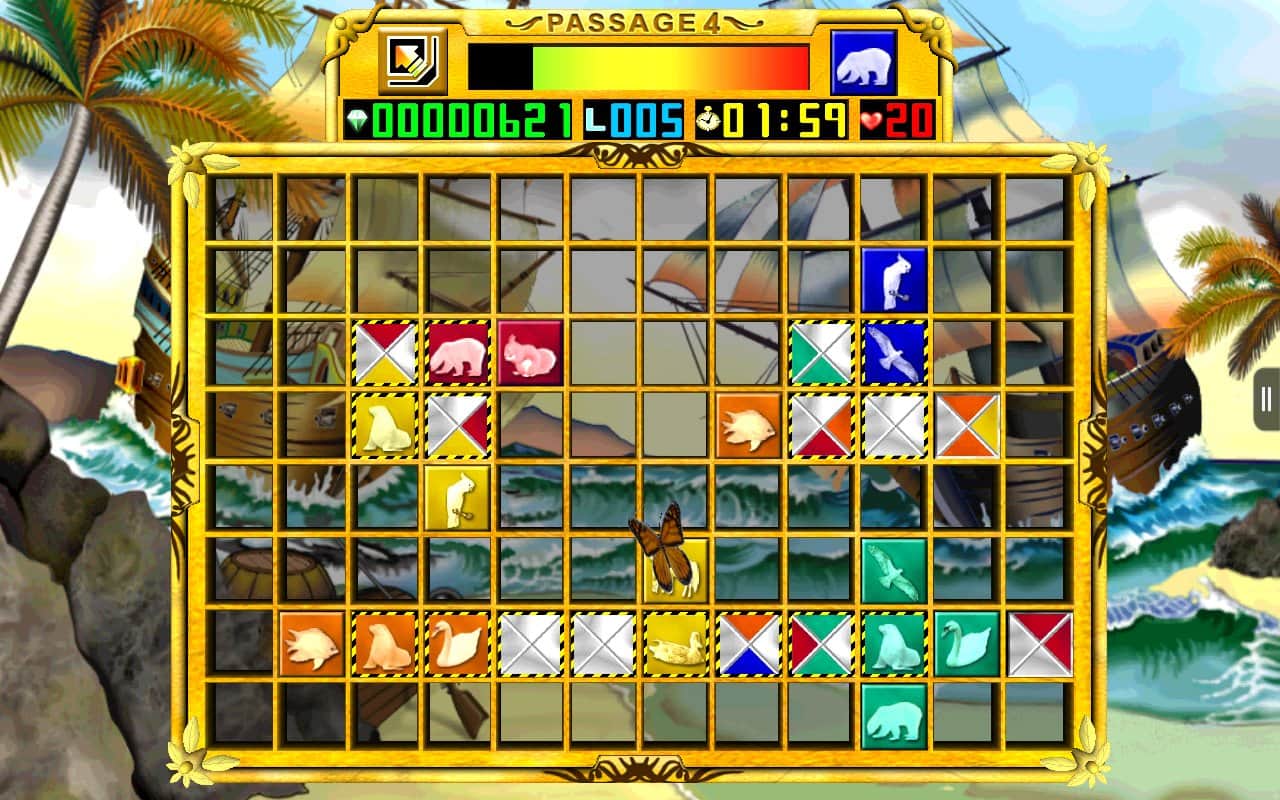 Passage 4 XL – увлекательная головоломка на андроид, где вы будете составлять одинаковые плитки в ряды. Размещайте плитку на доске так чтобы они совпадали по цвету или символам с соседними плитками и таким образом заполняйте весь проход до края. Заполняйте строки и столбцы на доске полностью, и они будут исчезать, а вы получать очки. Игра является простой в освоении, но сложной ведь в ней собраны лучшие элементы нескольких классических игр. В этой игре вы найдете 6 различных фонов, 7 наборов фишек, 220 уровней, 3 режима и три уровня сложности.