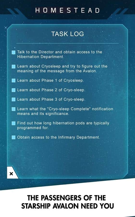 Passengers: Official Game - Это официальная игра по известному фильму "Passengers". Человечество отправило в космос более чем 5 тысяч пассажиров на сверх технологическом корабле Avalon, чтобы они поселились на далекой планете и начали там обустраиваться. Все пассажиры должны были спать около 120 лет, но двое из них проснулись намного раньше. Что это было, технический сбой системы или чья то нелепая шутка? Хватит ли им пищи? Есть ли не прошенные гости на борту корабля и что делать нашим героем все это время? Одна надежда только на вас! Помогите Джиму и Авроре выбрать правильную тактику выживания!