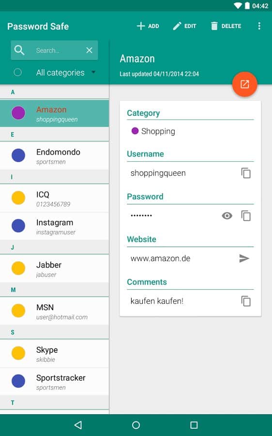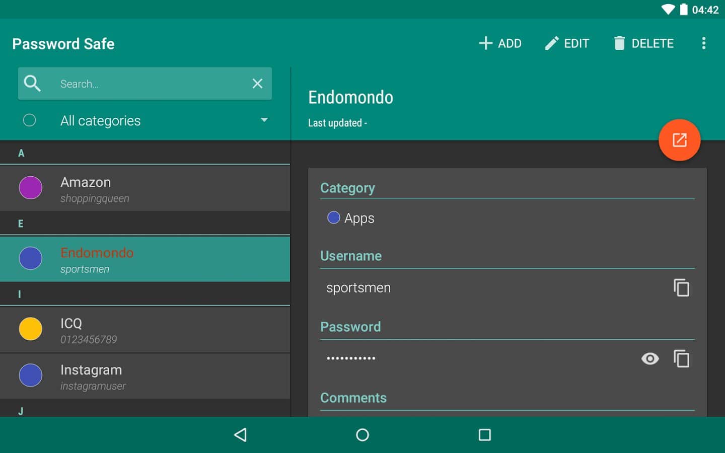 Password Safe - Не можете запомнить все свои пароли? А хранить на листке бумаге не очень удобно, и безопасно, тогда это приложение для вас. Оно сохранит ваши пароли, и не даст никому их не взломать, не узнать. В этом приложении нет ничего лишнего, оно идеально выполняет свою основную функцию. Так же, если у вас проблемы с придумыванием паролей, или просто хотите получить сложный и уникальный пароль, здесь есть встроенные генератор паролей, который вам в этом поможет.