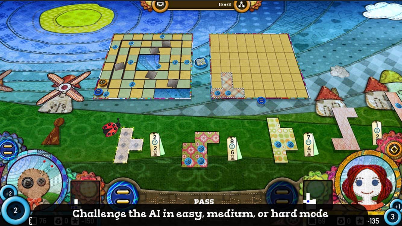 Patchwork The Game – игра головоломка на андроид, где вам предстоит быстрее своего соперника, сшить одеяло из лоскутков. В этой игре вы попадете на поле где у каждого игрока иметься свое одеяло, вашей задачей будет за меньшее количество ходов разместить на одеяле все кусочки напоминающие тетрис так чтобы не осталось не заполненных фрагментов. Играйте против компьютере или с реальным соперником. Правила в игре очень просты и объясняются перед началом игры. Игра порадует вас увлекательным и оригинальным дизайном, разнообразными формами лоскутков, из которых вы шьете одеяло и глобальной таблицей лидеров, где вы сможете соревноваться со своими друзьями и другими игроками.