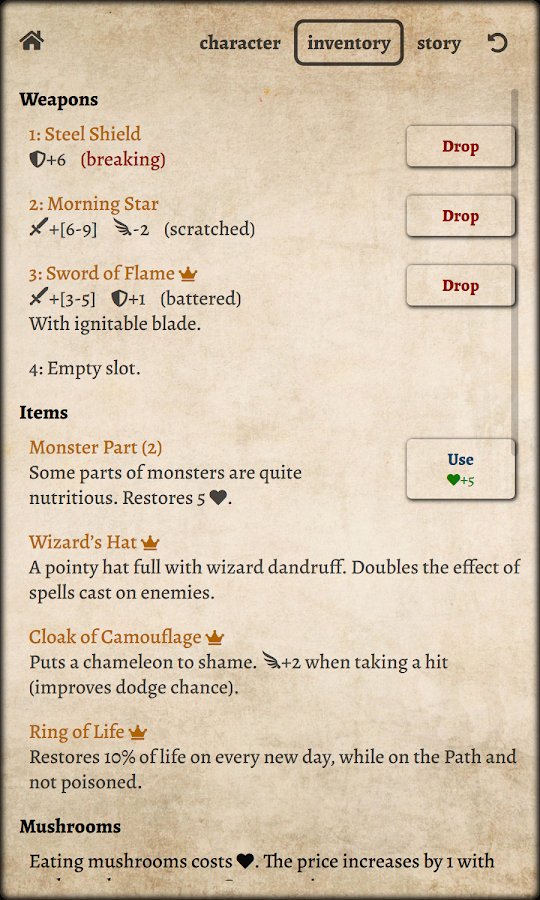 Path of Adventure: Text RPG - Отправьтесь в опасное текстовое приключение, где каждое решение определяет вашу судьбу. Исследуйте процедурно генерируемые подземелья, сражайтесь с монстрами в пошаговых боях и собирайте редкие сокровища. Здесь нет графики — только воображение, выбор и последствия. Создайте героя из 6 уникальных классов, экспериментируйте с оружием и магией, переживайте неожиданные события и принимайте рискованные решения. Игра сочетает дух классических RPG и roguelike, предлагая честный вызов.