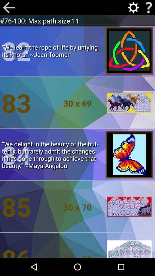 PathPix Edge – увлекательная головоломка на андроид, где вы будете решать сложные кроссворды. Эта игра напоминает японские кроссворды, с одним но, в этой игре вы будете применять различные цвета для того чтобы получить красочную картинку. Соединяйте одной линией пару чисел, но учтите что длина пути должна соответствовать номеру чисел на двух конечных точках. Соединяйте цифры между собой и нажимайте на экран дважды для того чтобы исправить ошибку. Как только все квадраты будут заполнены цветом, то вы сможете взглянуть на получившуюся картинку. В игре присутствует два способа навигации с помощью зума и одного прикосновения пальца.