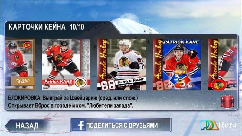 Patrick Kane's Arcade Hockey - К вашему вниманию представляем лучшую аркадную хоккейную игру! Станьте королём катка, сыграв со сборной США и супер звездой Патриком Кейном! Для этого вы должны будете не обращать внимание на правила и обходя вратаря, забить шайбу. В игре вас ждут улучшенная 3D графика, 18 сборных классических геймплеев с различными ускорителями и замедлителями, а также многое другое. Еще предстоит заработать престижные карточки Кейна, чтобы открыть дополнительные режимы игры. Соберите 40 городских команд и у вас появится шанс сыграть за самого Патрика Кейна. Выберите сначала одну из команд, чтобы показать свой арсенал хоккейных навыков, а затем постепенно доберемся до Кубка. Не пропустите эту интереснейшую спортивную игру!