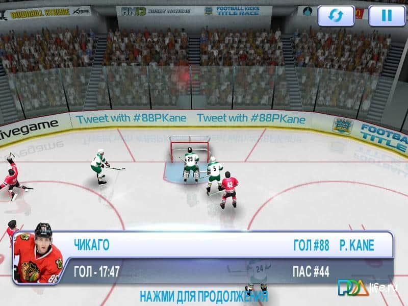 Игра хoрошая ,но выложите новую часть она называется Patrick Kane's arcade hockey,а то с маркета не хочу качать