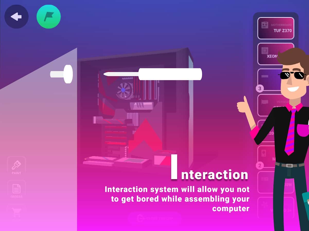 Вам придется собирать ПК, причем как вы сами хотите! Комплектующих очень много. Предусмотрены несколько ОС, а также небольшой интерактив в плане установки программ на ПК.