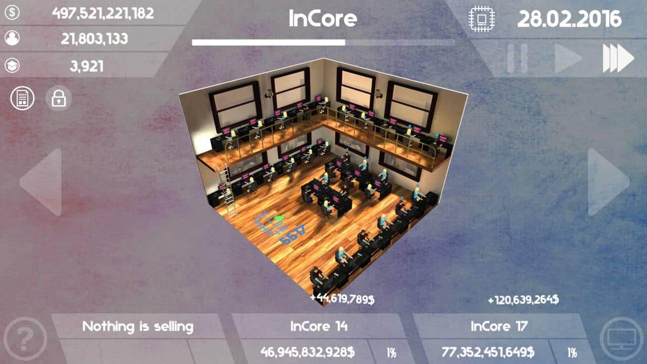 Довольно увлекательно. Со старта не разобрался первая компания обанкротилась довольно быстро. В дальнейшем когда вникнул, развил быстро. Игре нужно на мой взгляд, куда-то инвестировать излишок денег. В общем игра интересная. Прошел игру за 9 часов ) разработчик просьба , не забрасывал игру.