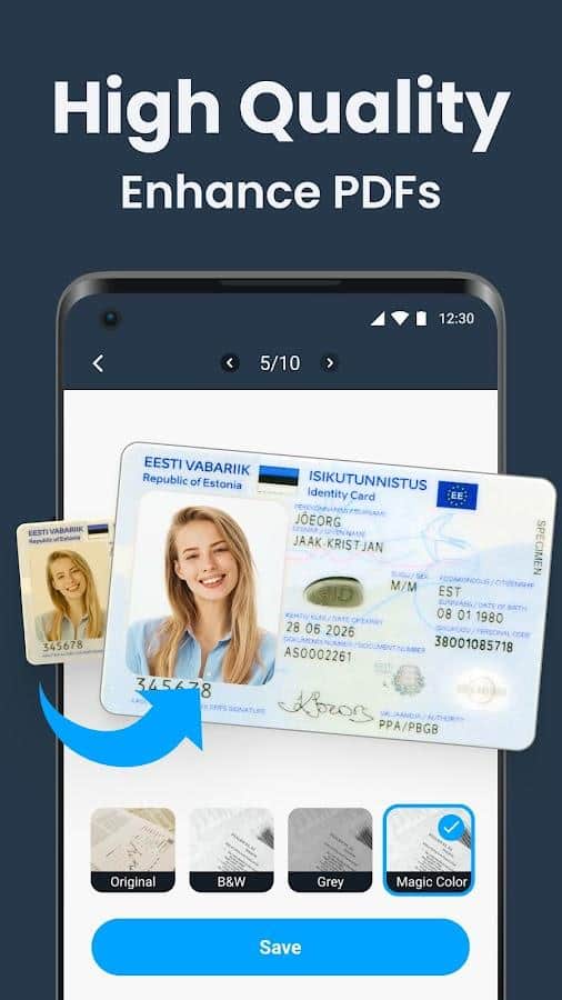 PDF Scanner - Отсканируйте любой документ или файл, чтобы превратить его в электронный формат PDF и работать с ним уже там. При сканировании вы можете воспользоваться сохранением оригинала или же наложить фильтры: черно-белый, магический цвет, серый режим. Кроме скана со стандартной камеры телефона, есть возможность загрузить уже готовые снимки с галереи, они тоже могут с легкостью перевестись в онлайн-вид. Проделайте работу с контрактами, визитными карточками, документами, квитанциями, счетами и другими видами файлов!