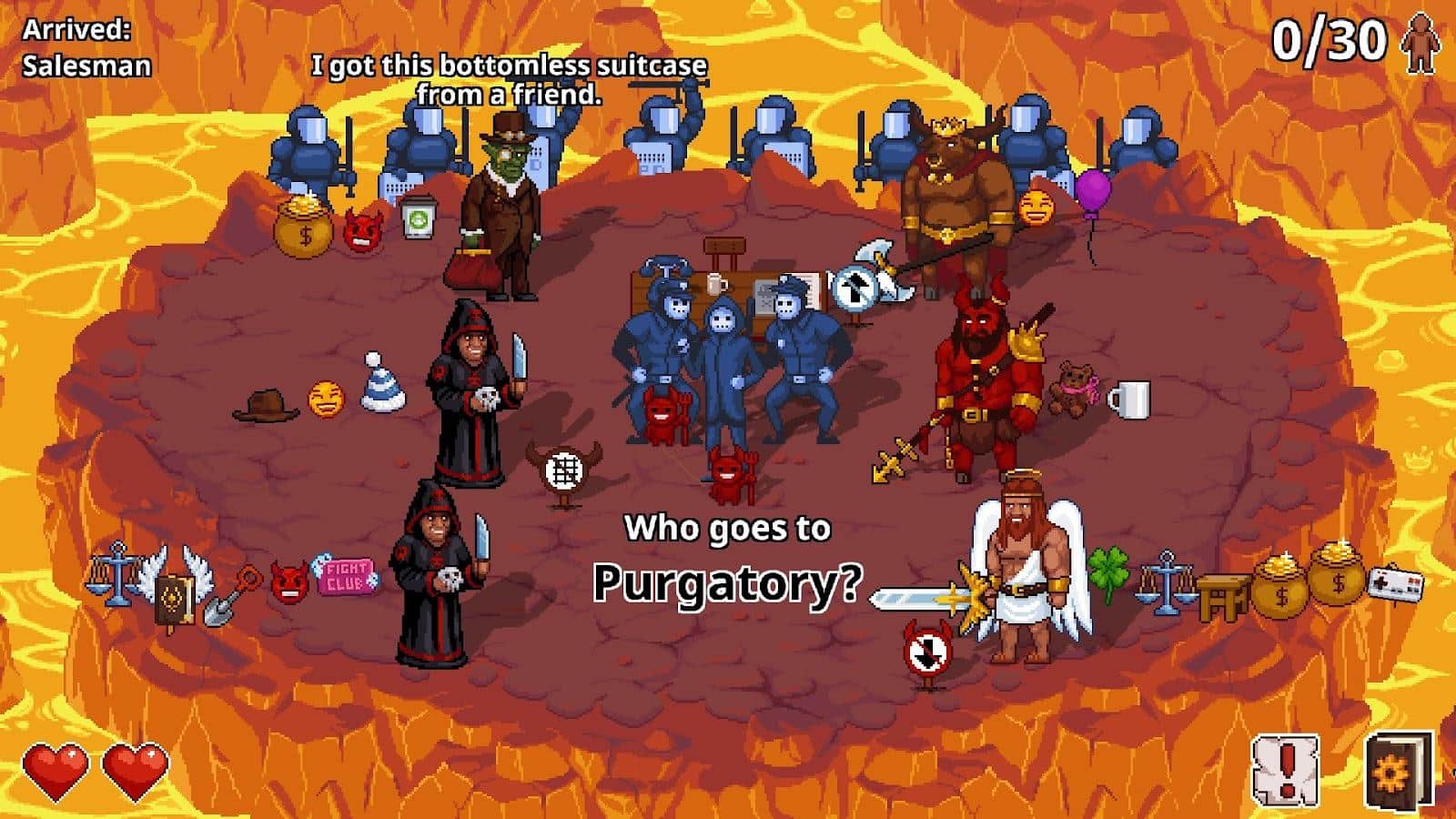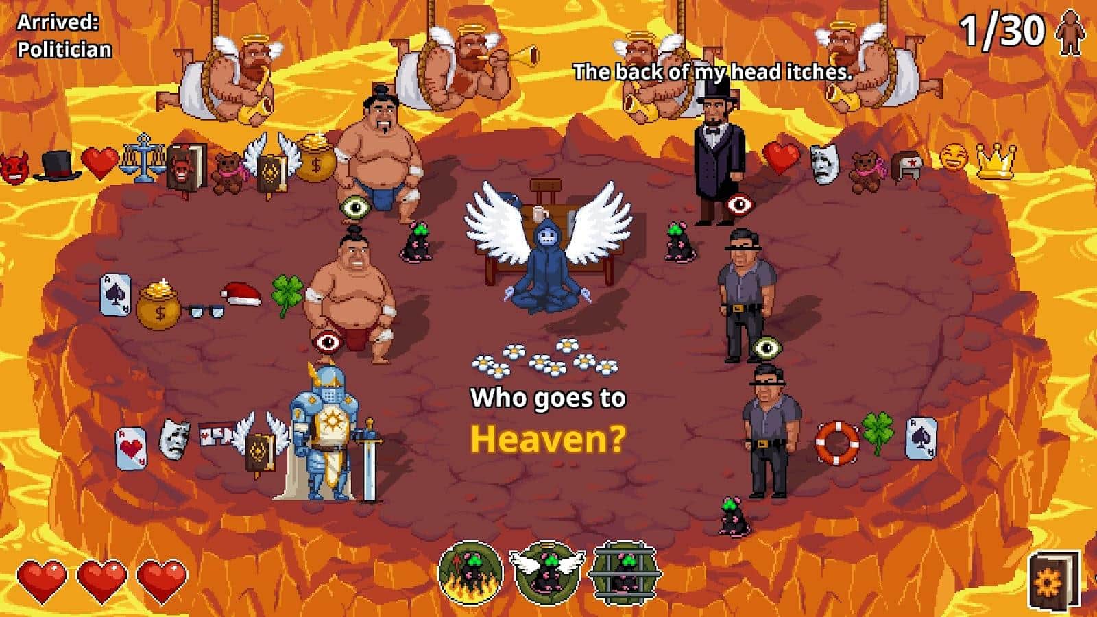 Распределяй клиентов по множеству различных признаков во все три стороны: Ад, Рай и Чистилище. Хитрые клиенты взаимодействуют друг с другом, мешают Жнецу, игнорируют стандартные правила, от чего приходится быть очень внимательным перед распределением почти каждого клиента.