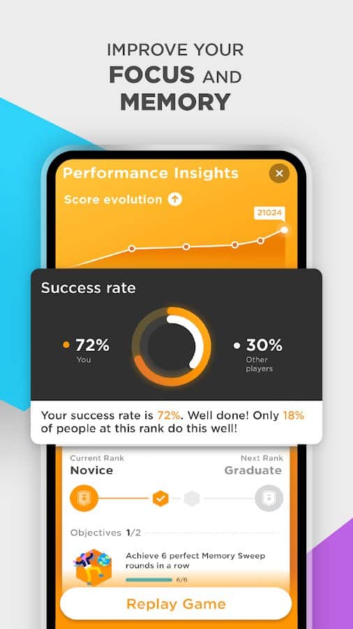 Заметно развивает мышление если играть больше месяца. Мини-игры разделены на категории: память, внимание и Т.Д. И какую-либо категорию можно исключить. Это полезно для старых игроков, которые не хотят знакомиться с новыми разделами, да и просто можно обратить внимание на что-то важное для себя