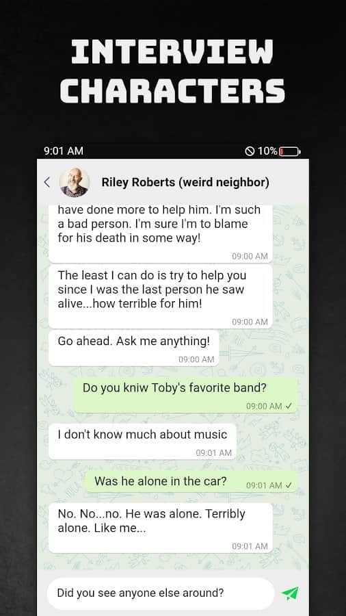 Доступ к телефонам персонажей: Исследуйте мобильные устройства, разблокируйте приложения, собирайте улики и раскрывайте тайны.