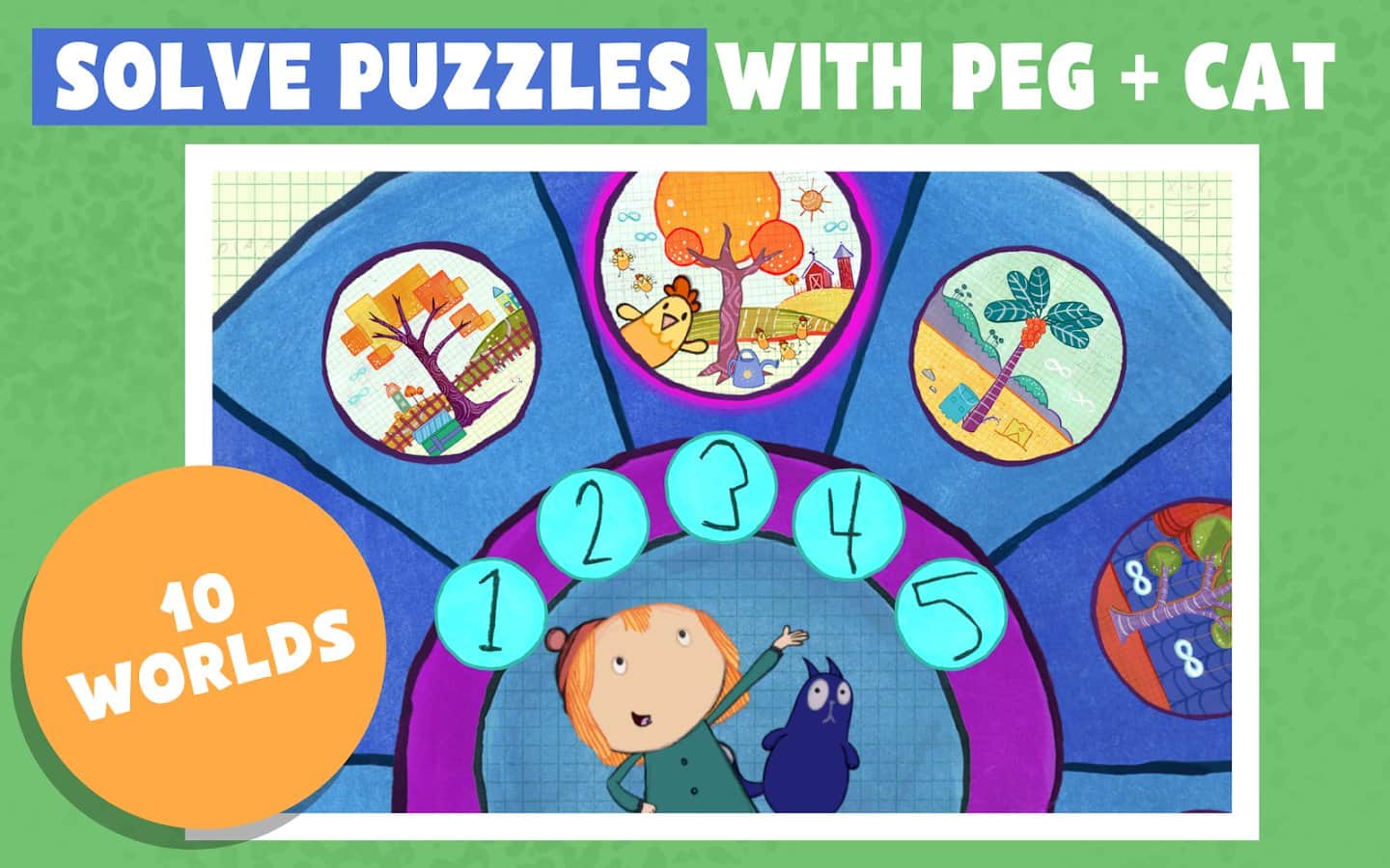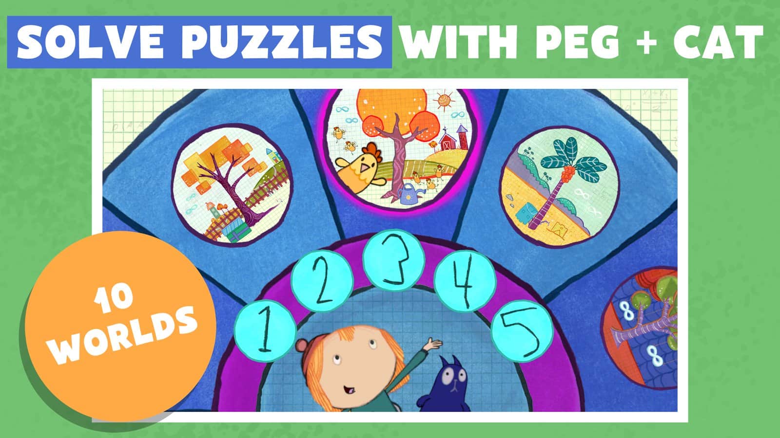 Peg + Cat: The Tree Problem – игра для детей дошкольного возраста в которой они будут помогать милому коту спуститься с дерева. Наш герой кот забрался на дерево и боится с него слезть и теперь вам предстоит придумать способ как его от туда спустить. Эта игра направлена на развитие творческого мышления и математических навыков у вашего ребенка. В ней ваш ребенок будет путешествовать по различным мирам, каждый мир имеет свои уровни, и решать хитрые головоломки помогая коту спуститься с деревьев. Покажите эту игру вашему ребенку, и научите его заботится о животных попавших в беду.