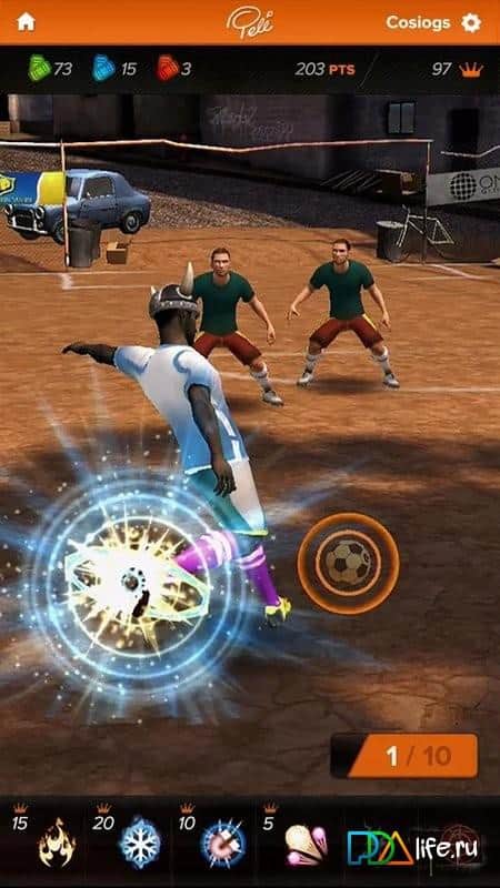 Pelé: King of Football - Великолепная игра на андроид про величайшего футболиста, которым вам и предстоит поиграть. Пройдите всю карьеру Пиле, от игр во дворе, до профессионально футбола в вышей лиге. Кроме это, вы можете не просто играть героем, но и настроить его под себя. Также вас порадуют наличие красивых супер ударов в игре. К сожалению, игра требует постоянный доступ в интернет, но поверьте, эта игра этого стоит.