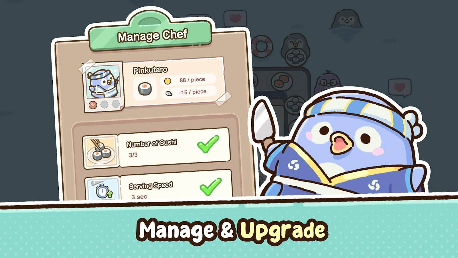 Penguin Sushi Bar – игра на андроид, где ледяные мастера превращаются в кулинарных гении. Здесь каждый пингвин — не просто пловец, но и настоящий артист в приготовлении суши. От свежих лососей до хрустящего водорослевого ролла, наш бар предлагает изысканные вкусы, утолит жажду искушенных гурманов и подарит вам неповторимый вкус Антарктики. Возьмите под свой контроль пингвина и приготовьте самые вкусные суши, которые понравятся вашим посетителям и станьте мастером своего дела.