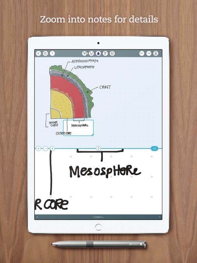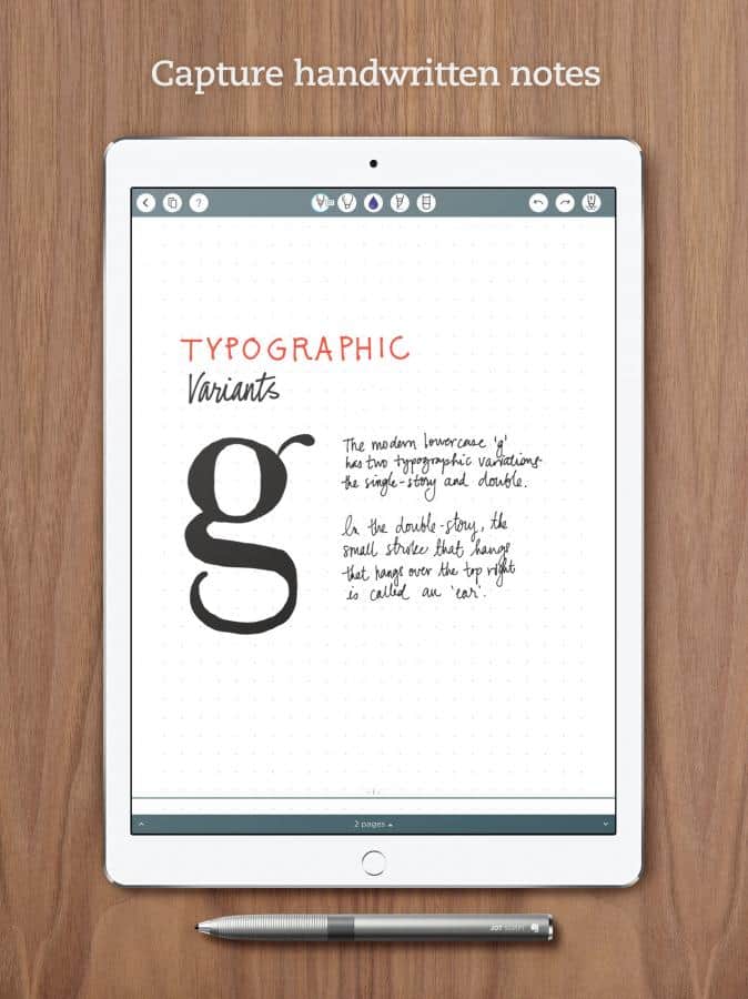 Penultimate создан компанией, подарившей миру Evernote и сделано приложение с не меньшей любовью и вниманием. Вы можете рисовать, писать заметки разноцветными чернилами, выбирать в качестве фона одну из предлагаемых подложек или загрузить собственную. Есть защита от случайных прикосновений пальцами или запястьями, имеется также удобный поиск.