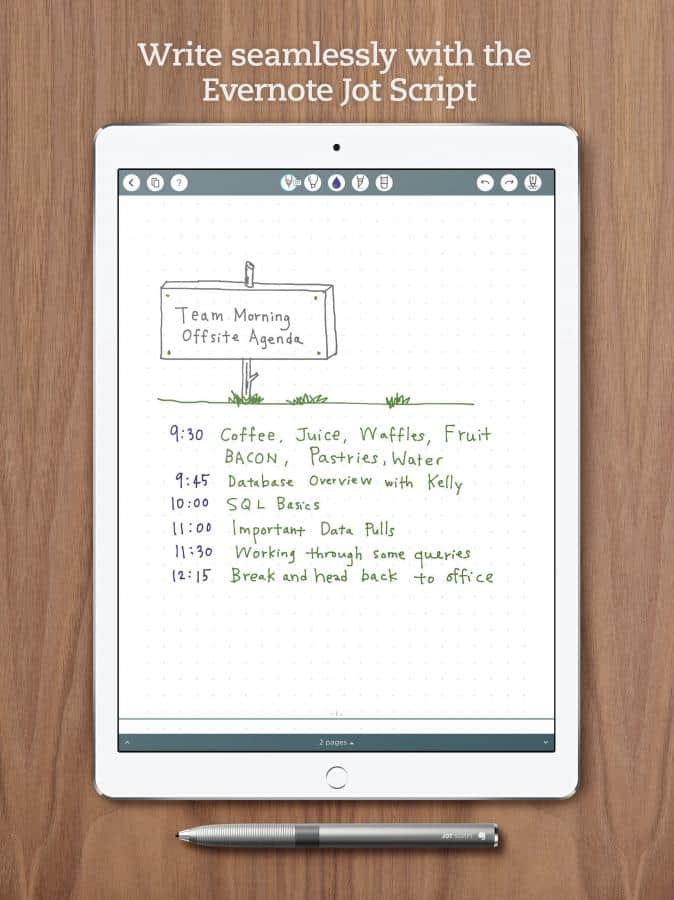 Очевидно, что программа адаптирована под работу со стилусом и имеет синхронизацию с Evernote.