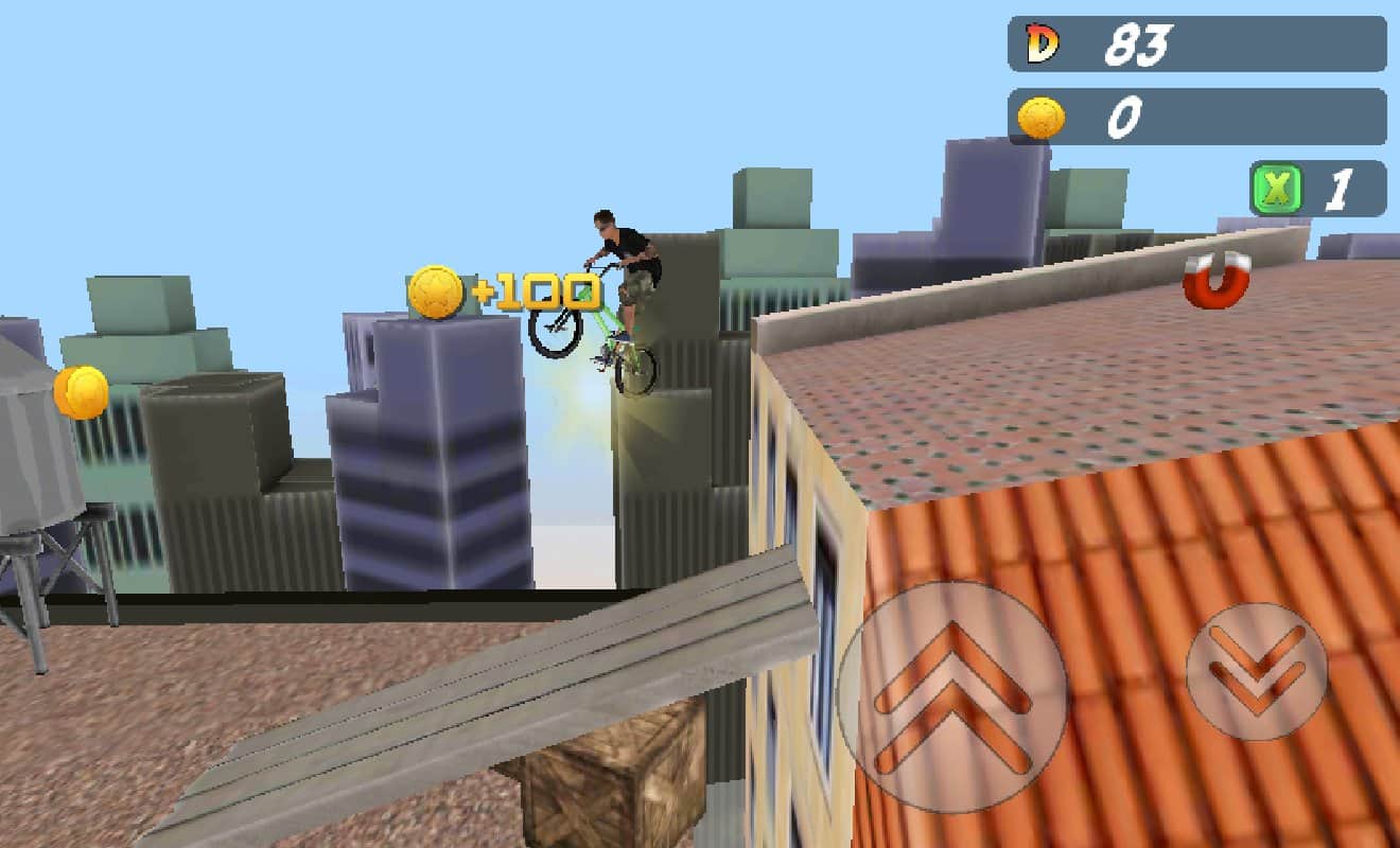 PEPI Bike 3D - Покоряйте городские крыши, на своем велосипеде. Увлекательная аркада, в которой вам предстоит совершать трюки, исполнять великолепные прыжки, и двигаться вперед, и всё это на крышах домов. Будьте осторожны, столкновение с любым препятствием и вы проиграли. По сути игра весьма простая, нужно ехать да прыгать, однако вам придется рассчитывать расстояние прыжка, иначе есть возможность перепрыгнуть одно препятствие но врезаться в другое. Совершайте трюки и зарабатывайте очки, и попытайтесь проехать как можно дальше.