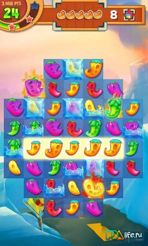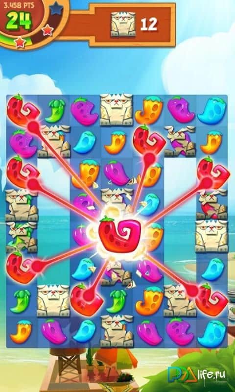 Pepper Panic Saga – помогите щенку, который очень любит перцы, а не кости путешествовать по различным мирам. Наш щенок не обычный пес за место того чтобы грызть кости он любит собирать острые перцы чили. Перемещайтесь по различным мирам и составляйте по три и более одинаковых перца в ряд. Как только ваши перцы достигнуть внушительных размеров они взорвутся и таким образом, вы запустите цепную реакцию и будете наслаждаться отличными эффектами. Проходите более 100 уровней, каждый из которых порадует вас уникальными задачами и миссиями. Соревнуйтесь со своими друзьями и поднимайтесь на самый верх таблицы лидеров.