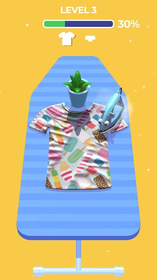 Perfect Ironing - как по мне это некая игра-релакс в которую можно поиграть после тяжёлого рабочего дня, когда всё тебя достало. Не надо ни о чём думать, просто утюжишь футболочки, гладишь сорочки, и всё это под сочные краски и успокаивающую музыку. Оказывается разглаживать морщинки у одежды не утомительно а наоборот завораживающе. В сухом остатке это неплохая аркада с яркими красками, интересной идеей, простым и понятным управлением и классной реализацией. В игре множество уровней, пройди их все и ты сможешь дать фору своей маме в реальной глажке белья, подготовь себя к самостоятельной жизни уже сейчас!