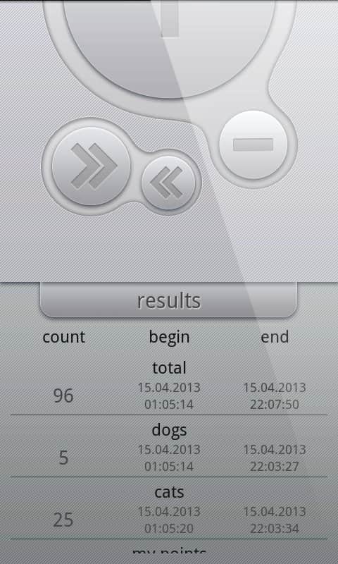 - Автоматическое сохранение результатов, даты и времени начала и окончания подсчета