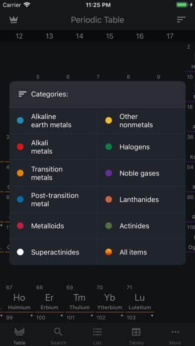 Periodic Table 2019(Chemistry) – отличное приложение для IOS, где вы найдете все данные о химических элементах. Это приложение отлично подойдет не только для химиков, но также и для школьников, студентов, инженеров и домохозяек, которые не имеют никакого отношения к химии. В игре перед вами окажется периодическая таблица, которая имеет много элементов, поделенных на категории. Нажимайте на различные элементы и читайте нужную информацию о нем, а также наблюдайте как он выглядит в природе. Также в этом приложении вы найдете таблицу растворимости. Открывайте для себя новые элементы и узнавайте больше о них.