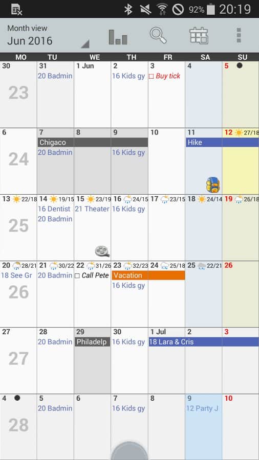 Personal Calendar - полезное приложение для делового человека, у которого на счету каждая минута времени. С помощью функции регулировки цветового обозначения клеток и столбцов, а также фона календаря невозможно пропустить важное событие. Удобные настройки функции зума, "копирования" и "вставки" помогут от отобразить и провести любое мероприятие без особого труда. Есть возможность узнать точный прогноз погоды на разный период, отредактировать дату, событие, фильтры.