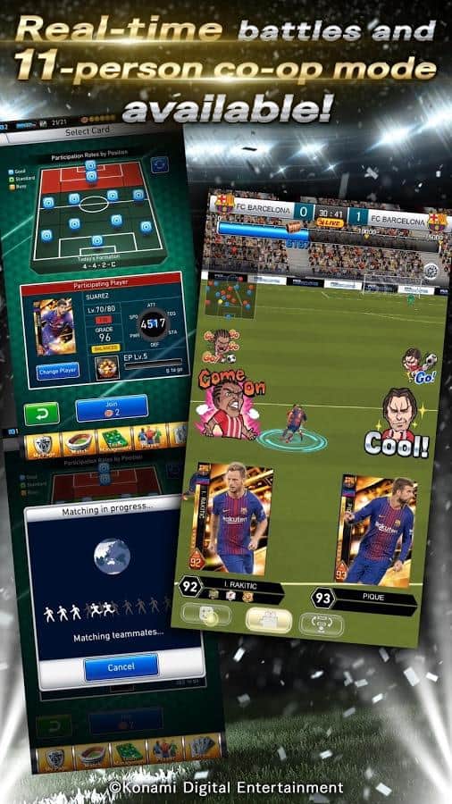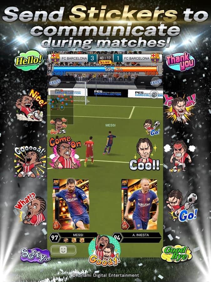 PES CARD COLLECTION – спортивная игра на андроид, где вы будете собирать свою неповторимую футбольную команду. В этой игре вашей задачей будет собрать футбольную команду из различных карт. Каждая карта будет символизировать одного футболиста. Тренируйте вашу команду, приобретайте для нее новую форму и наблюдайте за тем, как каждый игрок будет развиваться и расти. Как только вы добьетесь невероятных результатов, вы сможете бросить вызов реальным игрокам со всего мира и сражаться с ними. Все матчи в этой игре будут проходить в автоматическом режиме и чтобы общаться со своим соперником, вы сможете использовать различные наклейки, показывающие ваши эмоции. Следите за прогрессом вашей команды и играйте против сильнейших команд соперников.