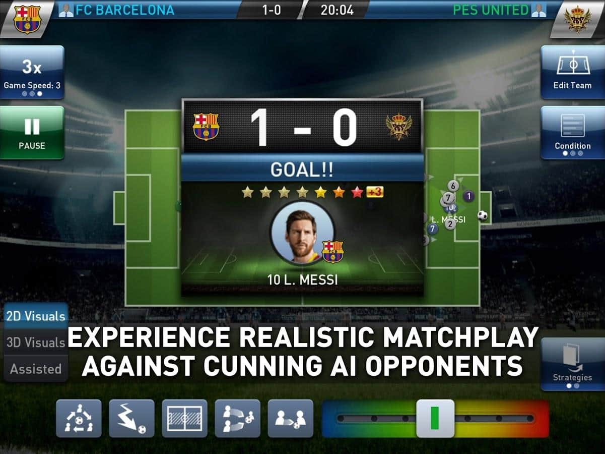 PES CLUB MANAGER - мобильная версия футбольного симулятора из популярной серии, как и в версии с игровых приставок главным достоинством Андроид версии стала ее реалистичность. И так в игре доступно более 5000 реально существующих игроков, реальные клубы в том числе "Бавария", "Ювентус" и "Пари Сен-Жермен", реальные соревнования и турниры. Но это далеко не все. Вам предстоит не только нанимать, тренировать игроков, принимать участие в матчах и турнирах, но еще и возглавить развитие клуба, строительство стадионов и прочих строений и многое многое другое. Кроме этого компания разработчик KONAMI при создании игры использовала движок Havok, что позволило реализовать потрясающий уровень графики и что еще более важно для игр этого жанра, в PES CLUB MANAGER полная поддержка русского языка.