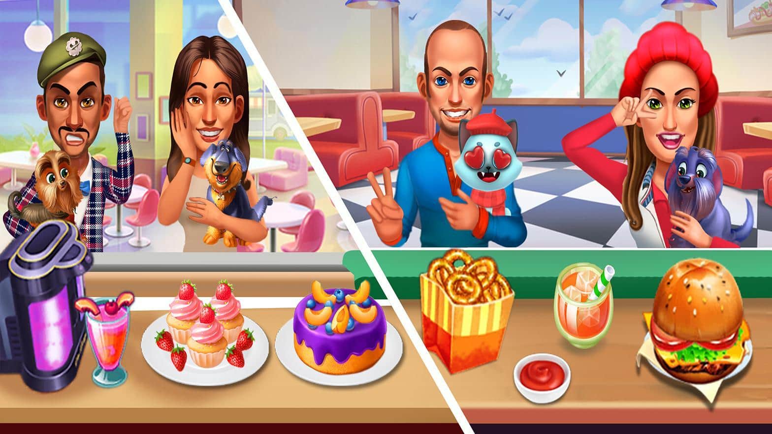 Pet Cafe – уникальная бизнес-стратегия. Если вы любите животных и обожаете готовить однозначно эта игра создана для вас. Вы окажетесь владельцем необычного ресторана: к вам приходят клиенты со своими питомцами в надежде побаловать своих любимцев и насладится вашими деликатесами. Для успеха необходимо обладать навыками тайм-менеджмента, т.к. если неправильно рассчитать время приготовления заказа можно потерять клиента, если же с этим у вас все ок – то вы однозначно добьетесь успехов. Готовьте, открывайте новые рецепты, расширяйте свой ресторан и привлекайте новых посетителей.