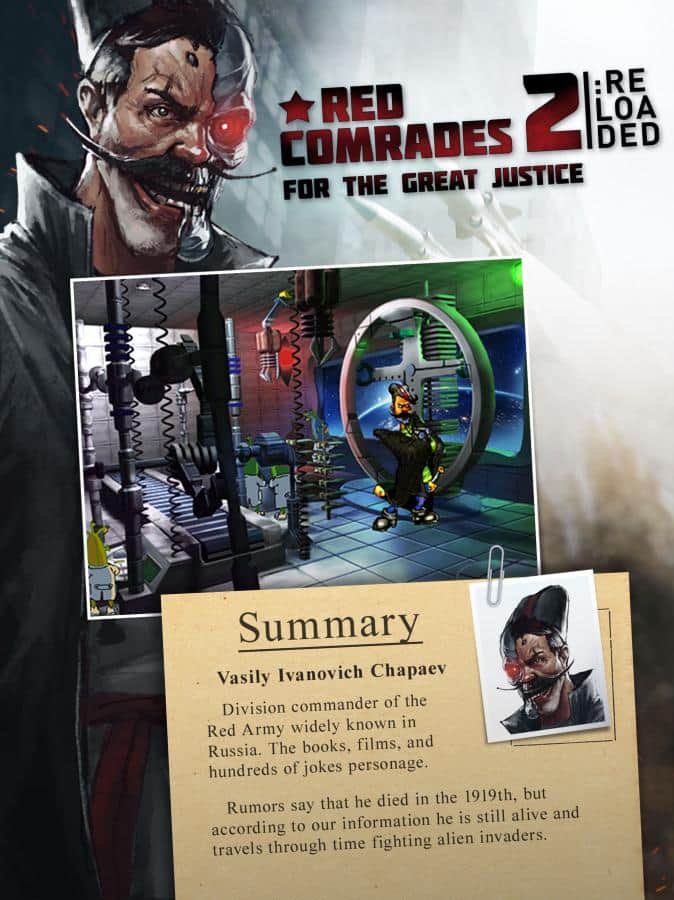 Петька и Василий Иванович 2 – вторая часть популярной игры для IOS, где вы погрузитесь в атмосферу искрометного юмора и увлекательных квестов. Эта игра перенесет вас в 1917 год где вы будете помогать раненому Чапаеву переплывать реку в тот момент когда спасительный луч перенес его на космический корабль. Вместо того чтобы умереть от вражеской пули наш герой возвращается на Землю в качестве терминатора с железным телом. Тут и начинается все самое интересное. Погрузитесь с головой в увлекательный сюжет игры и помогайте главным героям игры решать непростые головоломки, проходить захватывающие квесты и пытаться уничтожить всех своих врагов.
