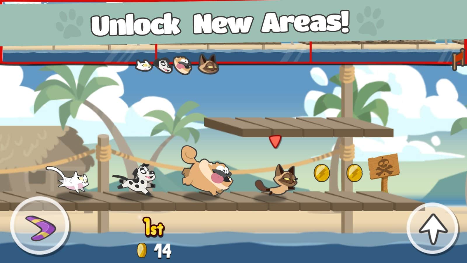 Pets Race - Fun Multiplayer Racing with Friends – многопользовательская игра на андроид, где вы будете бегать в компании соперника. Выбирайте себе домашнее животное и бегайте по различным локациям, стараясь прийти к финишу первым. В этой игре вы будете свидетелем бесконечной войны между собаками и кошками. Бегите вперед и собирайте по пути многочисленные монетки и бонусы, которые позволят вам замедлить своего соперника или ускорить своего персонажа. Примите свое участие в стремительных гонках и улучшайте своих героев по ходу игры. Собирайте монетки и открывайте для своих персонажей вкусные сладости и обустраивайте дом.
