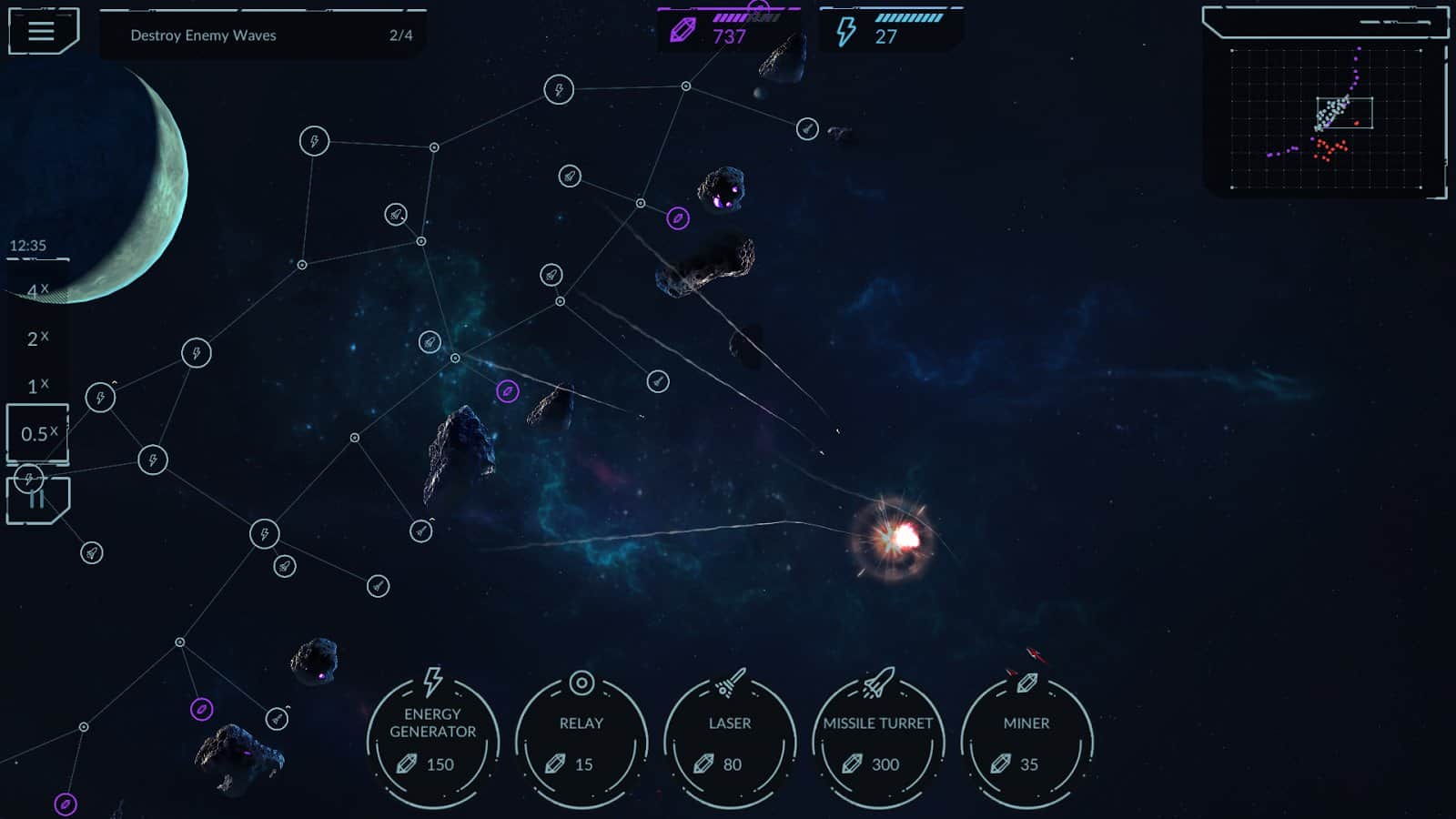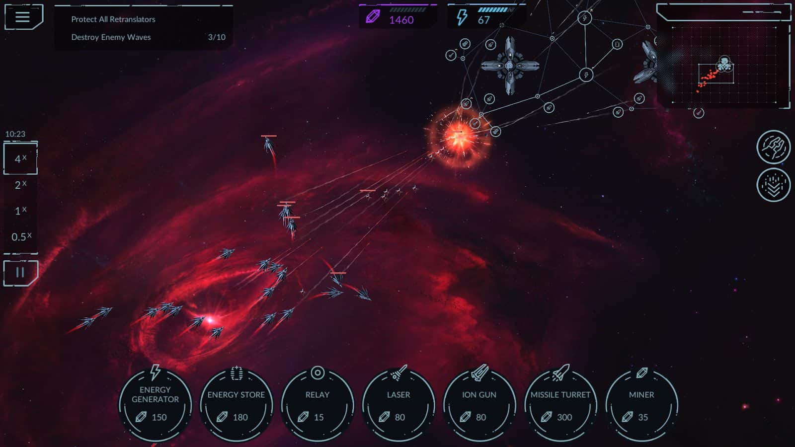 Phantom Signal – стратегия на андроид, где вы будете путешествовать по космическому пространству. Сюжет игры начинается с того что дрейфующий космический корабль «просыпается» из-за необычных помех в пространстве и сразу после этого ваш корабль атакуют враги. Чтобы дать отпор многочисленным врагам и добраться до источника сигнала капитан корабля активирует небольшой космический корабль, которым вы должны управлять. Занимайтесь строительством энергосети, добывайте ресурсы, улучшайте корабли и уничтожайте врагов. Сделайте все возможное чтобы победить врагов, которые имеют как сильные, так и слабые стороны.