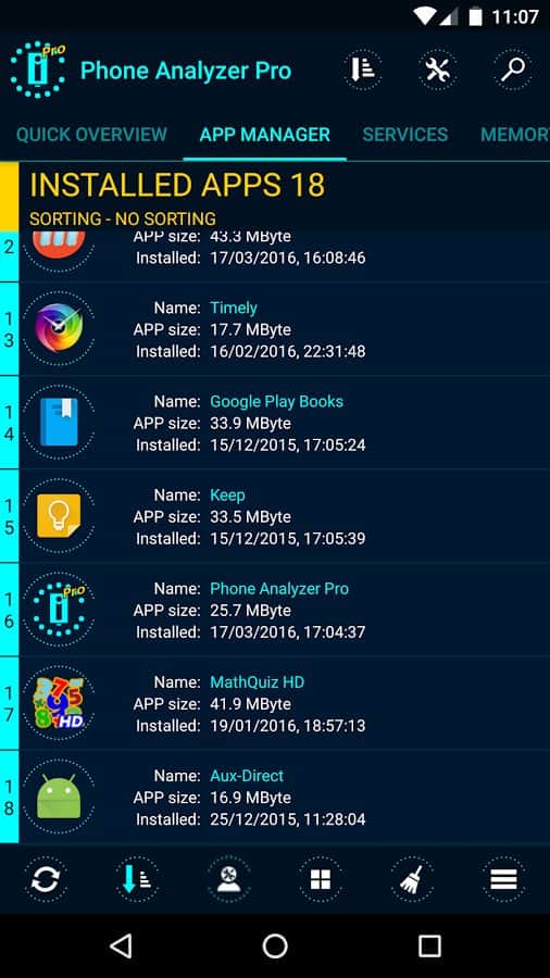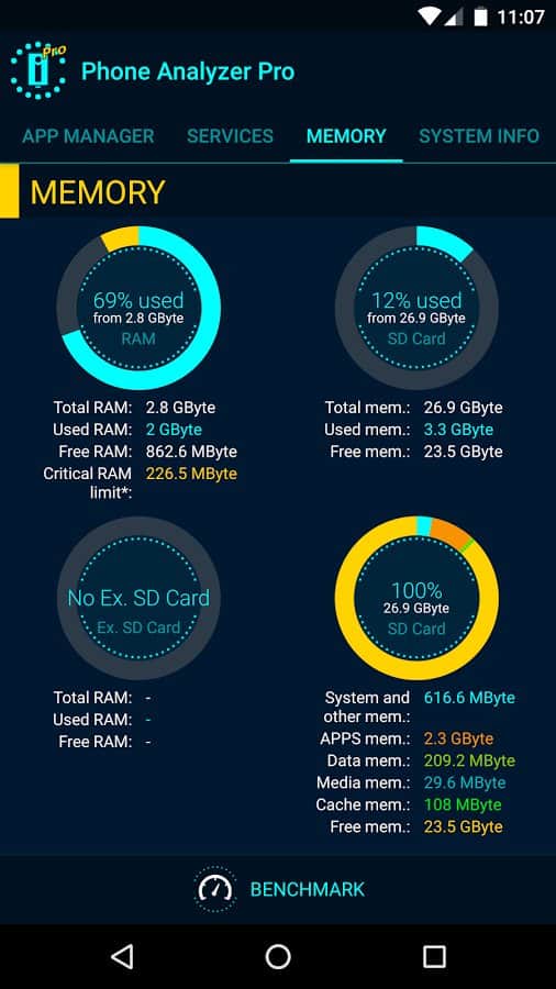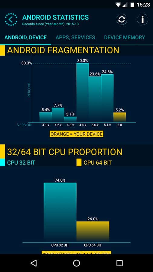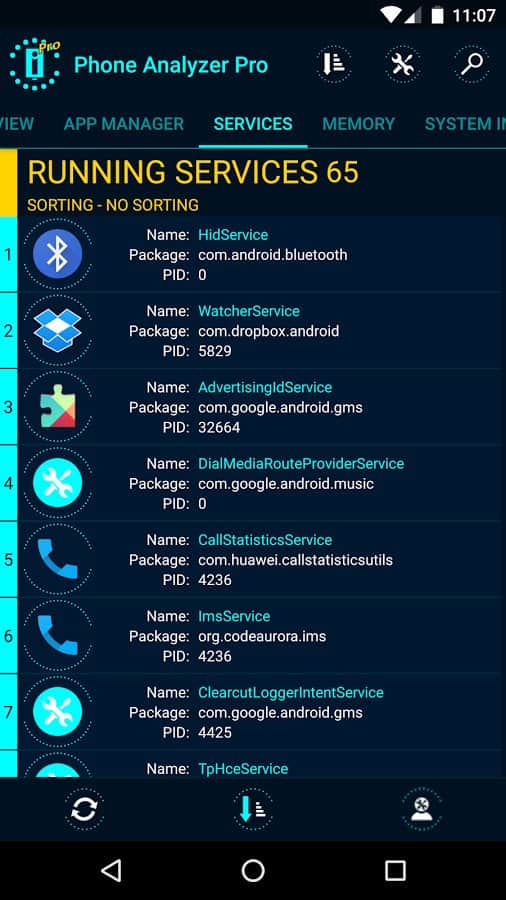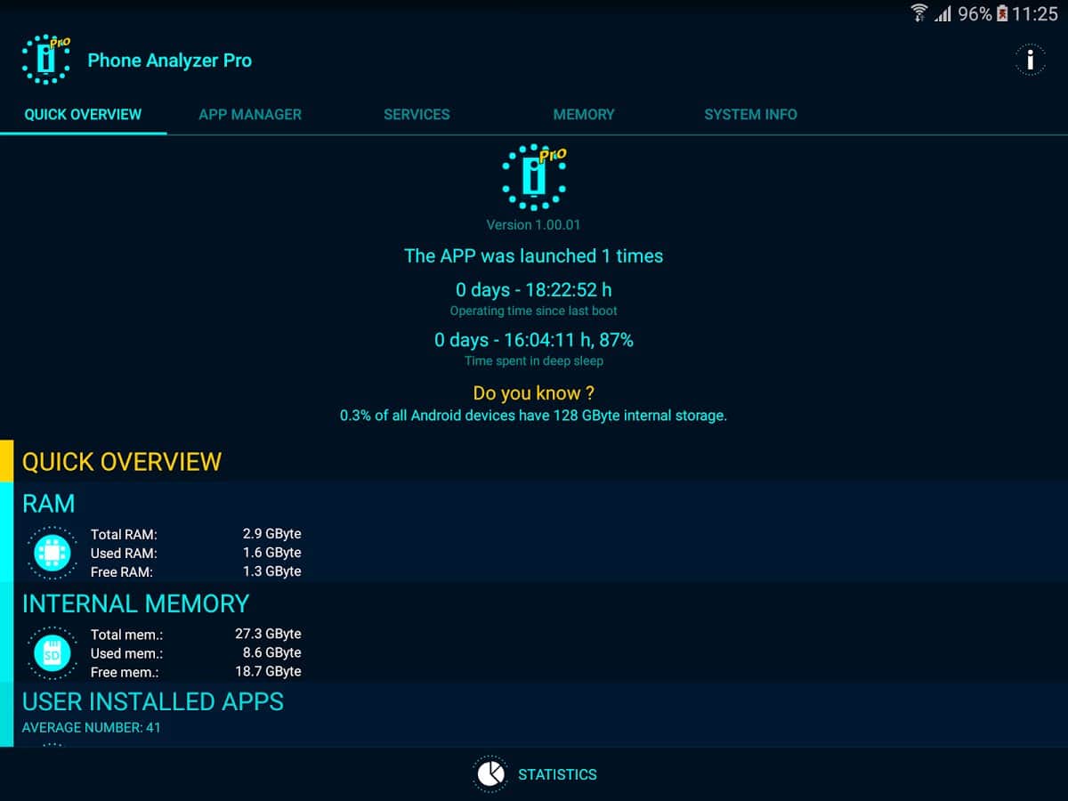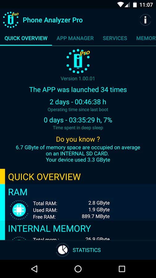 Phone Analyzer Pro - Анализируйте данные о своем смартфоне, всего в два клика. С помощью этого приложения вы сможете узнать всё о своем устройстве, в режиме реального времени. Начиная от температуры процессора, и заканчивая общим количеством установленных и запущенных служб и приложений. Здесь есть всё! А по мимо этого вы так же сможете открыть общую мировую статистику в которой более чем 50 тысяч различных устройств. Люди с различных уголков мира делятся данными о своих устройствах, и вы можете сравнить их со своими.