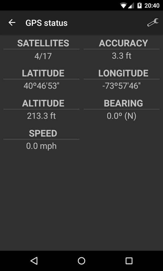 Вы увидите реальные данные, предоставленные GPS: спутники, широта, долгота, высота над уровнем моря, скорость