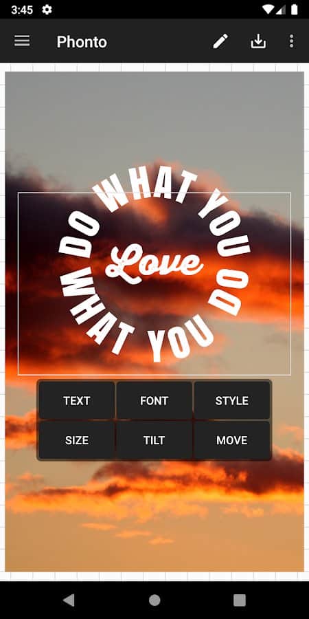 Phonto - Text on Photos - Не нужно загружать необходимые шрифты для их наложения в тексте на фотографию, достаточно выбрать изображение для редактирования, написать нужный текст, разместить его и затем поставить красивый шрифт, предварительно скачав его на устройство прямо с приложения. Если же вы не можете найти понравившийся шрифт внутри приложения, просто импортируйте его в формате zip, ttf или otf. При правильной настройке размера, цвета, углом наклона, интервала между буквами и межстрочным интервалом, вы точно получите желаемый результат.