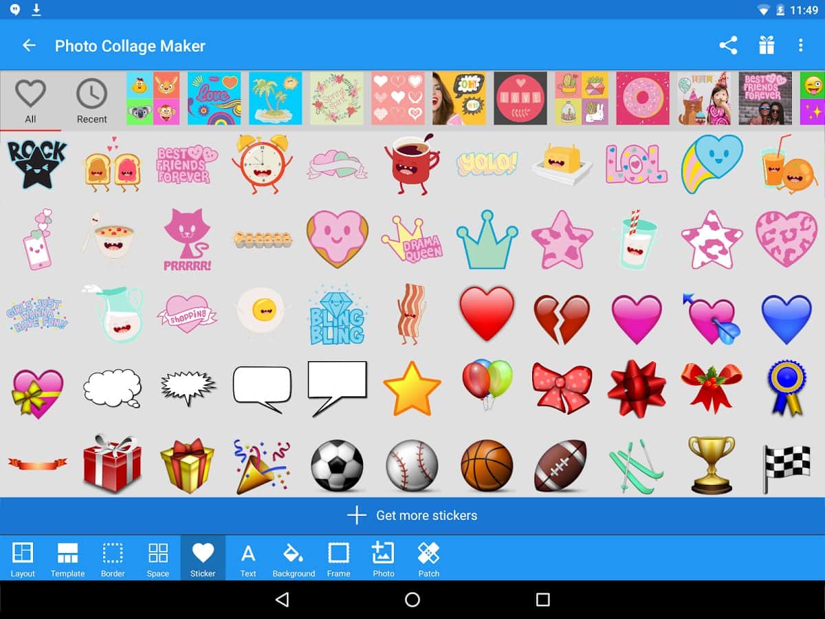Photo Collage Maker – данная программа поможет вам быстро и качественно создать различные коллажи. Ни каких особых знаний или изучения сложных функций в программе нет. Всё легко и просто, освоить в считанные минуты сможет даже ребёнок. Просто выбираем нужные вам фотографии и в один клик начинаем их менять. Добавляя различные предметы из большой базы. Помимо всего прочего, есть возможность подписывать фото, для этого в программе есть 55 различных шрифтов. В приложении более чем 100 различных компоновок и столько-же ярких наклеек и стикеров, которые непременно оживят ваши снимки. Имеется так-же простенький редактор фотографий, с помощью которого можно изменить картинку.